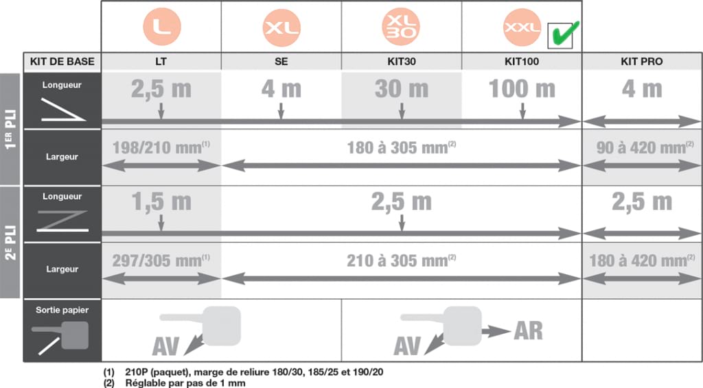 - 100 m (1er pli) / 2,5 m (2e pli)